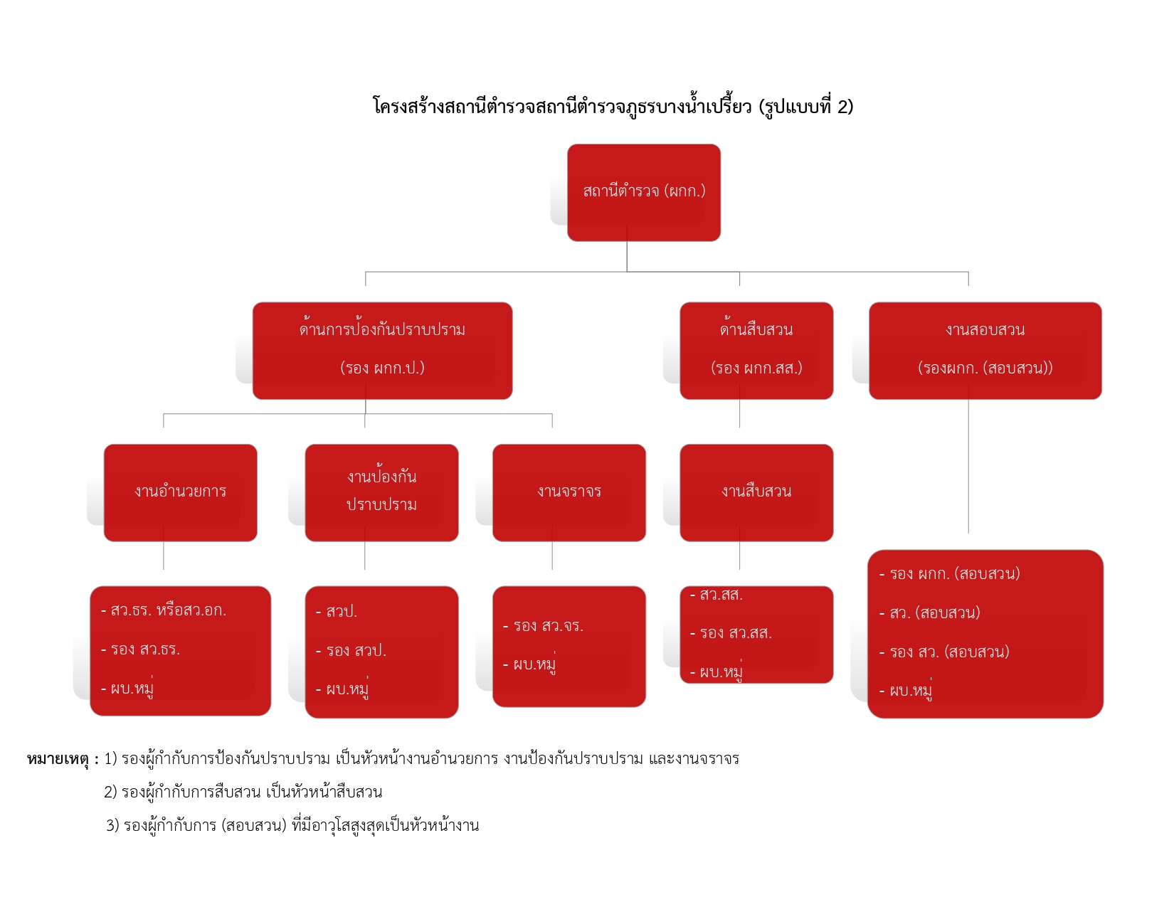 มีหน้าที่เกี่ยวกับการวางแผน อำนวยการ สั่งการ ควบคุม กำกับ ดูแล ตรวจสอบติดตามและประเมินผลด้านการสอบสวนคดีอาญา การมีความเห็น การให้ความเห็นชอบ หรือเป็นส่วนประกอบของงานนี้ เพื่ออำนวยความยุติธรรมให้แก่ประชาชนในการสืบสวนสอบสวนคดีอาญาให้บังเกิดประสิทธิภาพสูงสุดในเขตอำนาจการรับผิดชอบหรือพื้นที่ปกครองของสถานีตำรวจ